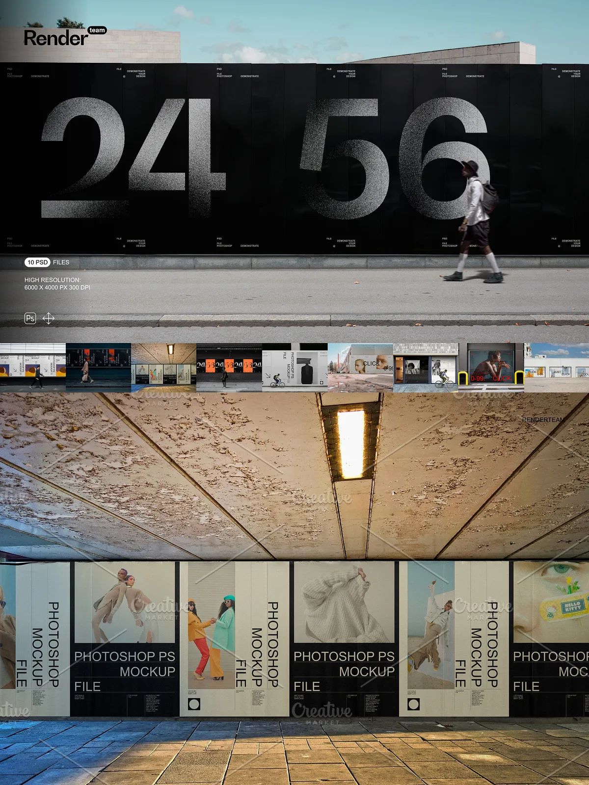 - 10 layered PSD mockup files showing a variety of urban poster and billboard types and viewing angles